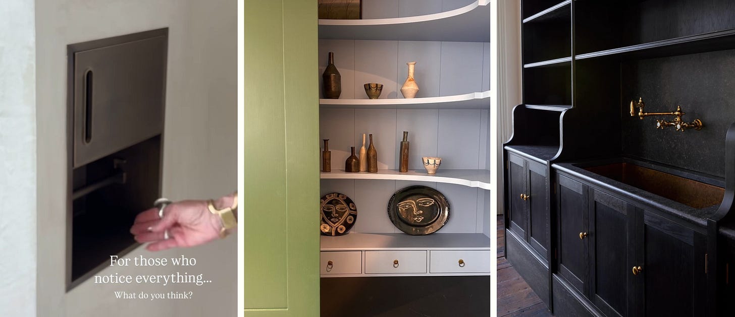 — Shelf detail. I also love the way that these shelves (middle) curve rather than being just a straight and angular shelf. They allow for a little more space and they look like a design element that was more intentional.