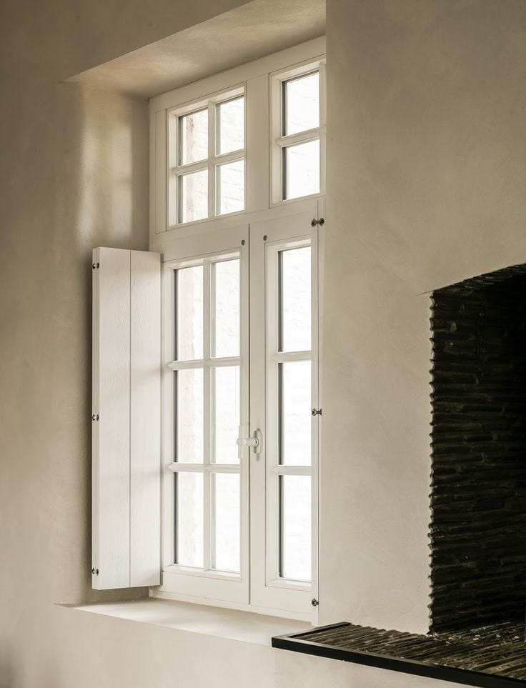 — We’ve been discussing incorporating interior window shutters as a design element/instead of cafe curtains or as a way to offer privacy without shutting out all of the light (image via Pinterest).