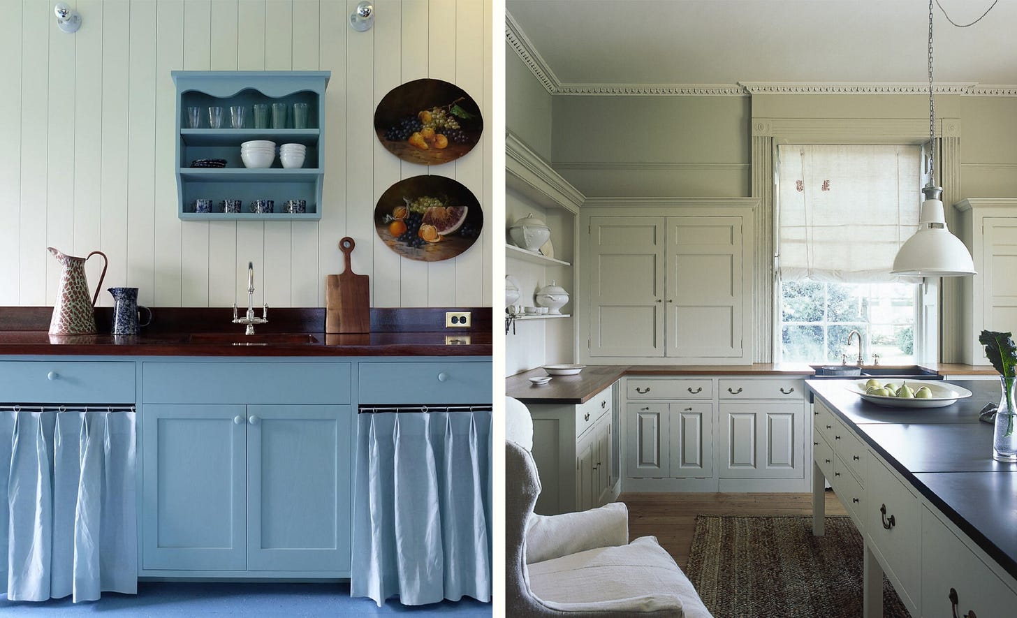 — The idea of a room using all one color (like this blue kitchen from Studio Dorion) is something that initially might be a hard sell to clients on paper but it delivers a big impact and feels anything BUT boring. Same with this kitchen by Plain English Design. Classic but interesting.