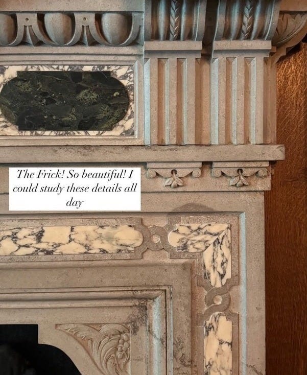 — I screenshot Insta stories constantly as sources of inspiration. This close-up from a mantle at The Frick a fellow creative posted is a genius combination of marble and stone I want to incorporate on a project one day.