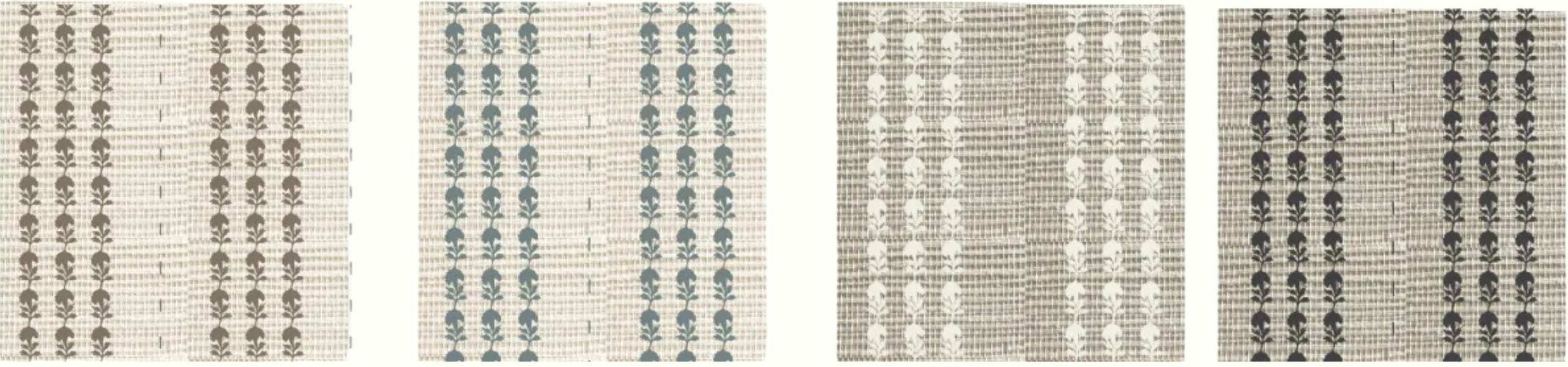 — We are working on adding printed grasscloths + some new patterns to our wallpaper collection. Above is a snapshot from a design board of our most popular pattern, the Eva Carnation, being printed on a grasscloth ground. We are just at the beginning stage but getting excited!